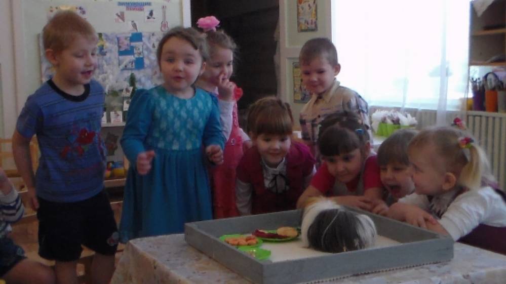 Цель: Расширять представления детей о декоративных животных. Закреплять умение детей наблюдать за морской свинкой, не мешая ей. Подводить детей к умению самостоятельно делать элементарные умозаключения о повадках животного. Формировать желание помогать взрослым ухаживать за животным.
